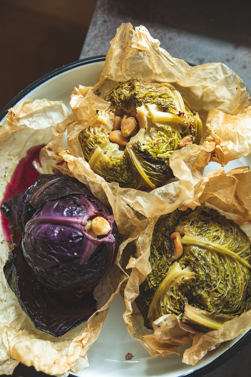 מסדרים את הירקות על תבנית מרופדת בתבנית אפיה.